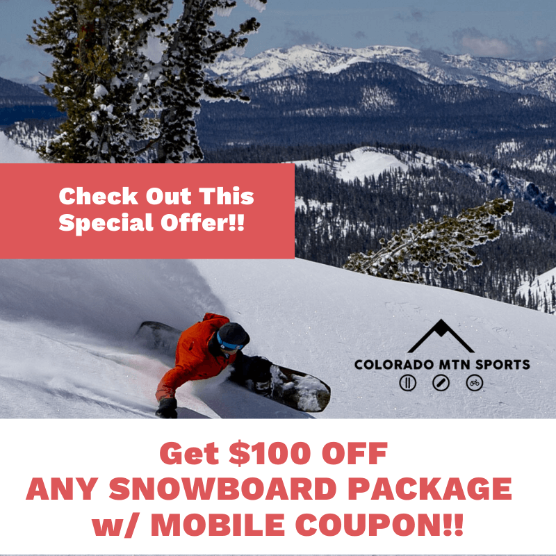 We have all the newest and latest gear ready for you to take out on your favorite slopes and whats even better is we are offering $100 OFF any snow board package ( board, boots, binding) you buy while supplies last.